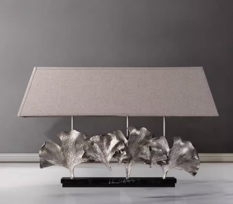 Настольная лампа с основанием из натурального мрамора и декоративными элементами ручной работы
