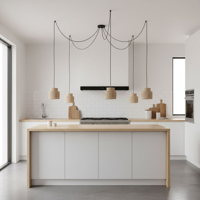 Подвесной светильник с абажуром из натуральных материалов