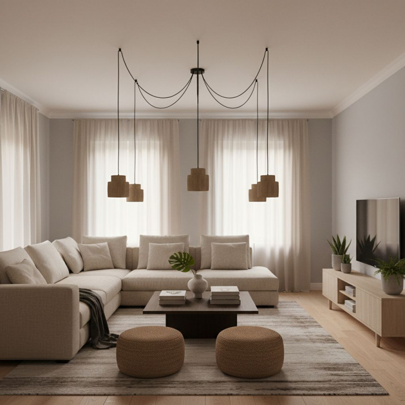 Подвесной светильник с абажуром из натуральных материалов